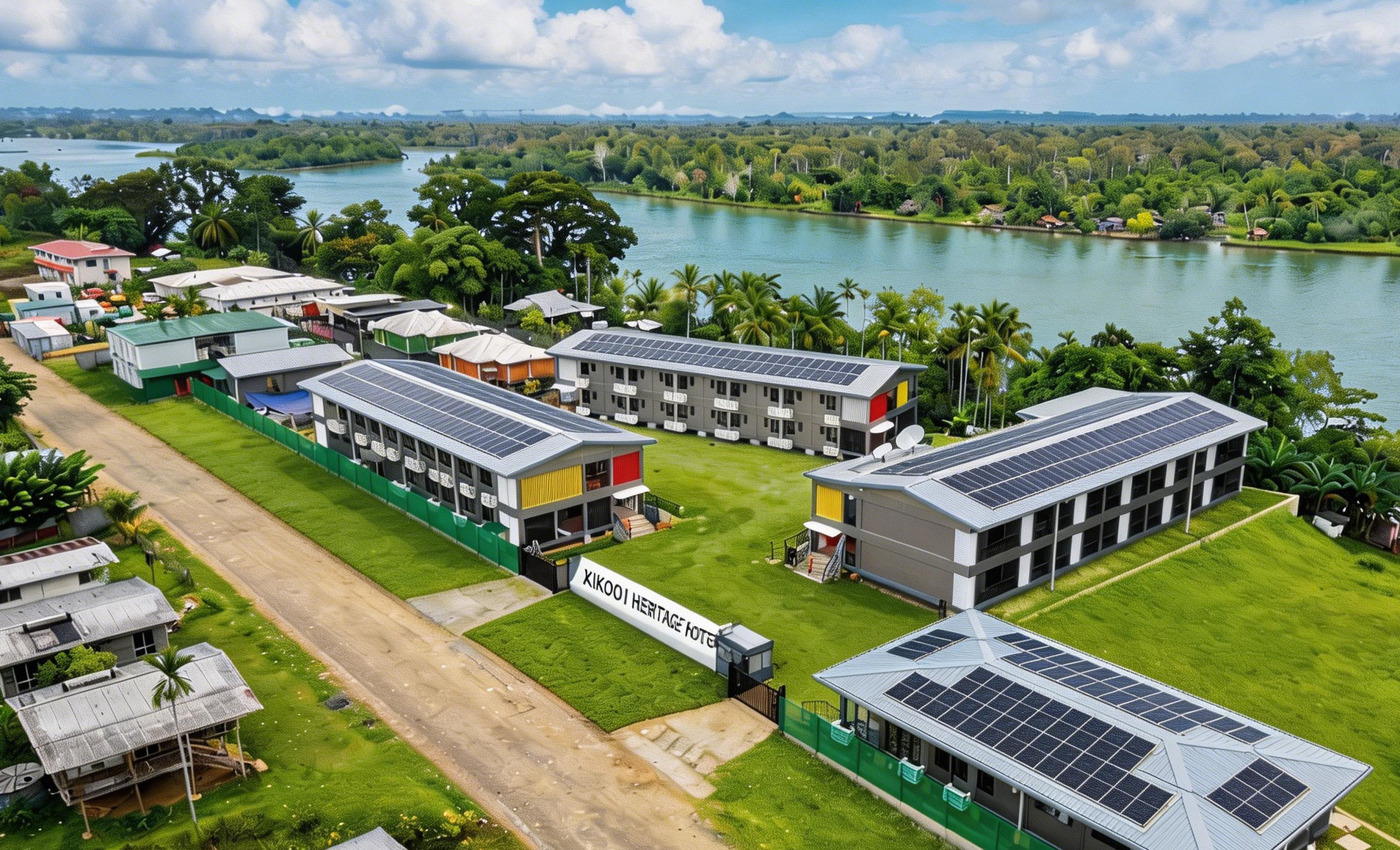 该项目坐落于巴新基科里地区,光伏装机容量达240KWp,储能装机容量960Kwh,投运后年均发电量约40万Kwh,每年可减少碳排放389吨,实现了经济效益与生态效益的双重提升。