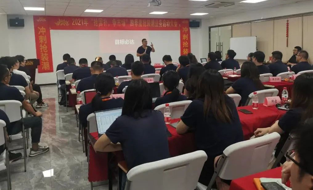 2021年9月29日,晴天科技总部迎来了山东、河南、河北、安徽、晋陕五大区域的大区经理、渠道经理、工程技术支持团队的成员,大家正是为四季度的抢装潮业务启动会从各个省份奔赴而来。此次动员大会除了业务部门全体成员参会外,公司的运维部、工程部、以及综合部门都积极参与其中。旨在总结2021年前三季度业务,启动四季度业务,冲刺全年目标的达成,需要全员同心协力,全力配合。